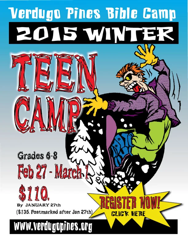Teen Winter Camp Friday, February 27, 2015 12:00 PM 12:00 Sunday, March 1, 2015 2:00 PM 14:00 Google Calendar ICS If you are interested in signing up for Winter Camp at Verdugo Pines, please contact Naomi Rainey. Scholarship opportunities are available.