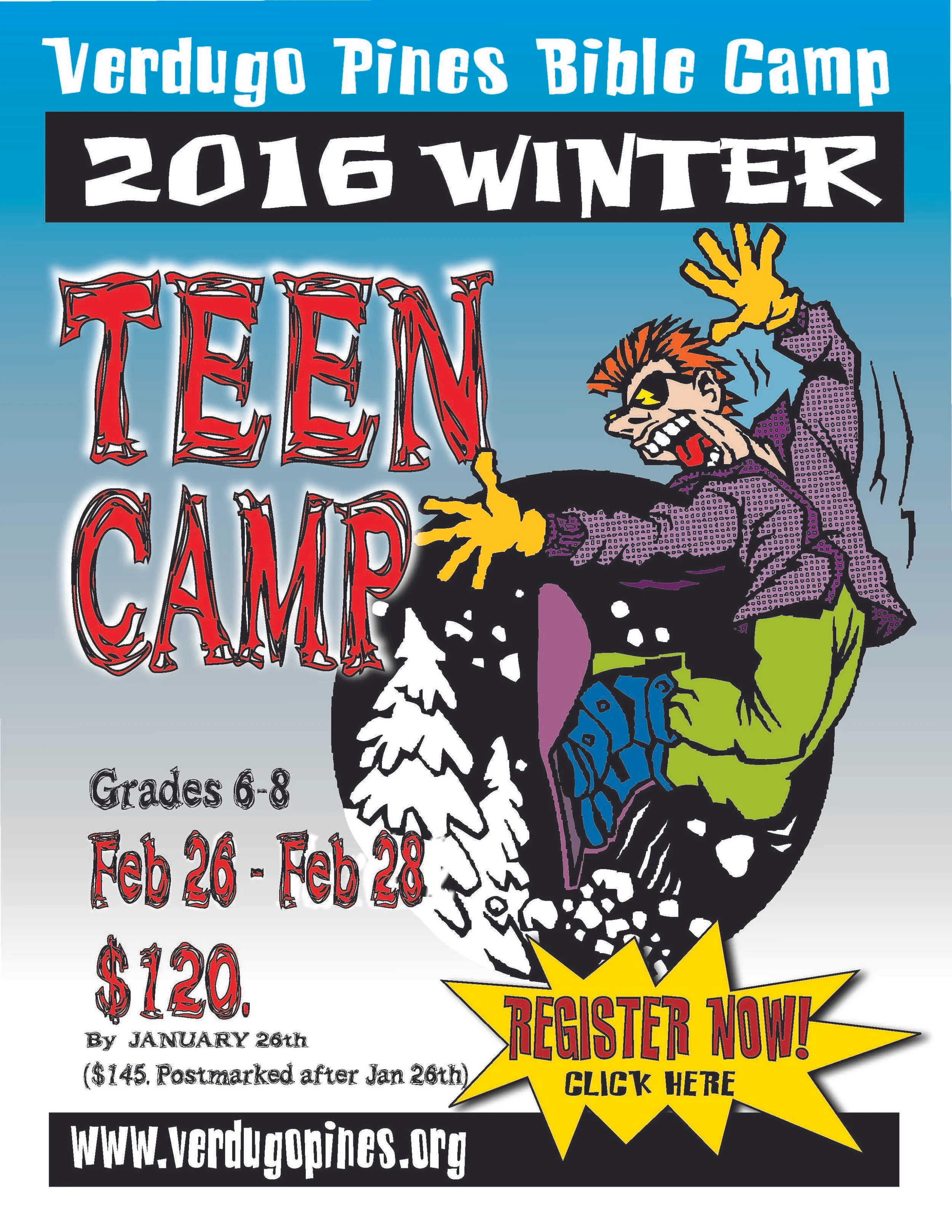 Teen Winter Camp Friday, February 26, 2016 2:00 PM 14:00 Sunday, February 28, 2016 3:00 PM 15:00 Google Calendar ICS