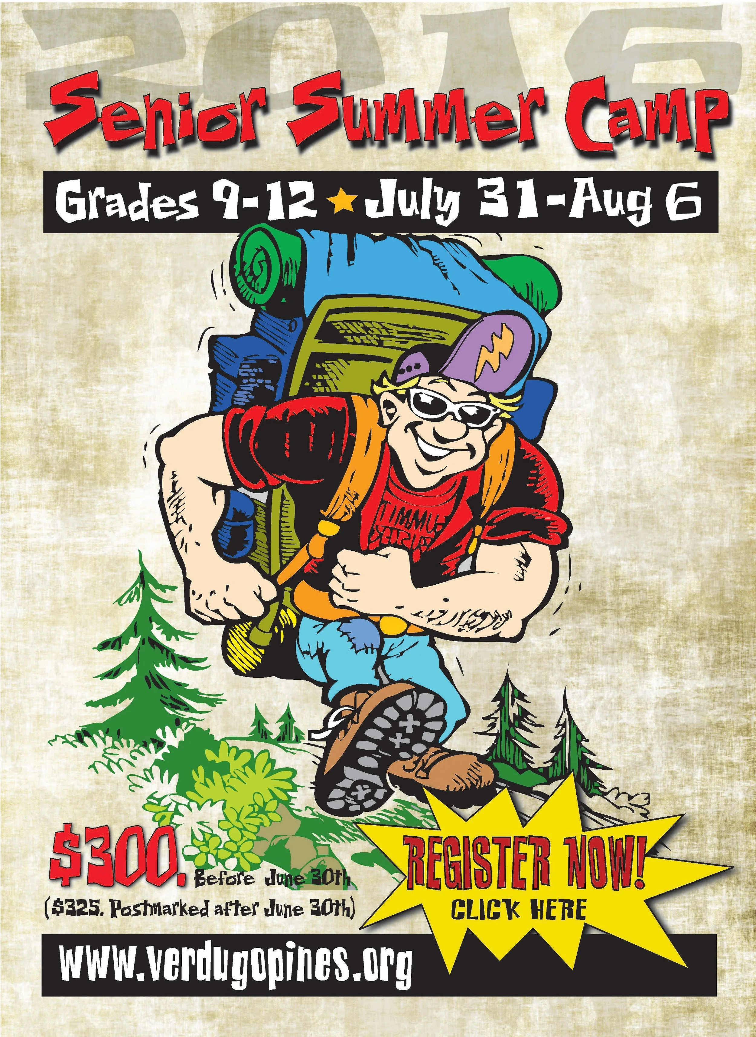 Senior Camp Sunday, July 31, 2016 2:00 PM 14:00 Saturday, August 6, 2016 12:00 AM 00:00 Google Calendar ICS